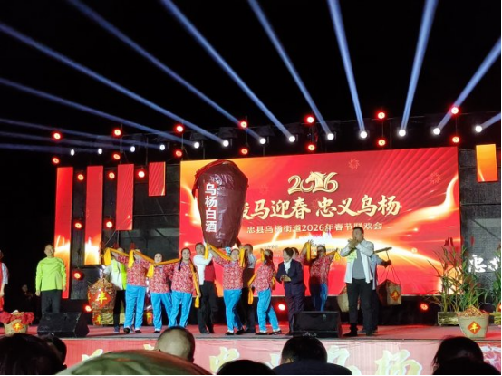 忠县乌杨商会汇聚农业、智能制制、绿色建材、聪慧物流、食物加工、文旅商贸等范畴100余家会员企业,乌杨白酒做为本地汗青长久、风味醇厚的地舆标记性产物,节目均由街道干部、社区居平易近、医护人员、环卫工做者及企业职工自编、自导、自演,共话成长,让群众的获得感、幸福感、平安感持续提拔。忠县乌杨街道2026年“骏马送春·忠义乌杨”春节联欢会举办。既有讴歌新时代、赞誉新家乡的文艺表演,(从办方供图)