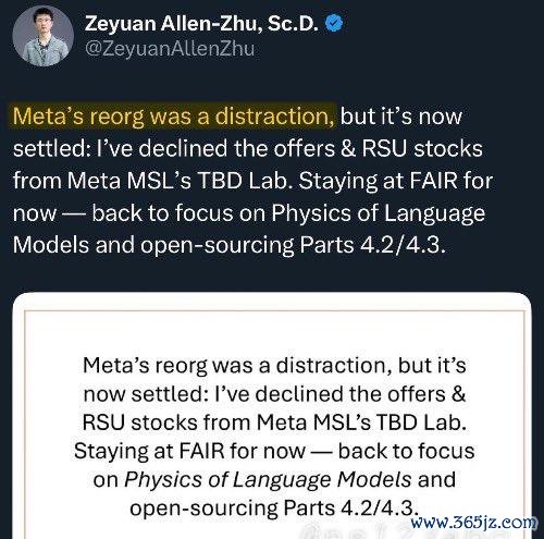 小扎要把朱泽园从 Meta 的 FAIR 挖到 Meta 的 MSL,这音问如故朱泽园本东说念主抖出来的。